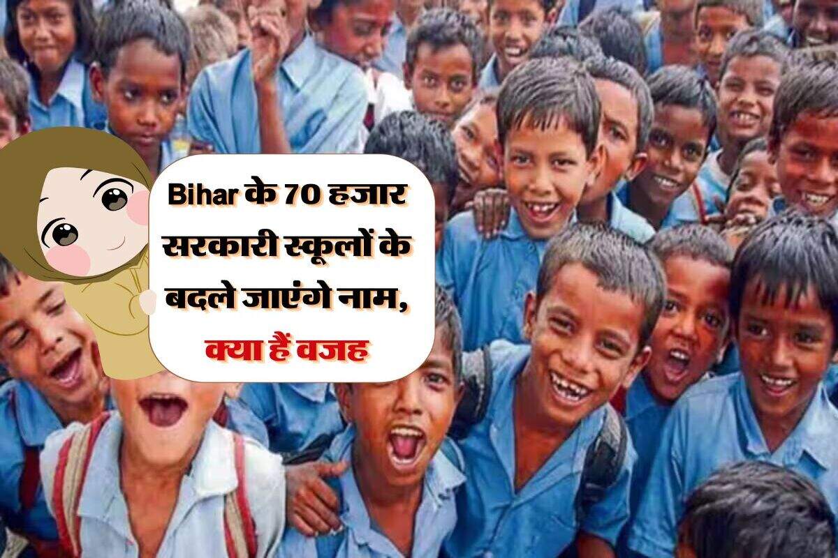 Bihar News : बिहार वालों के लिए बहुत बड़ी अपडेट सामने आई है। बता दे कि बिहार में सरकार सरकारी स्कूलों के नाम बदलने की तैयारी में है। जानकारी के मुताबिक बिहार की 70000 से ज्यादा सरकारी स्कूलों के नाम बदले जाएंगे। इन 70 हजार सरकारी स्कूलों के नाम इस प्रकार से बदले जाएंगे। पढ़ें पूरी खबर