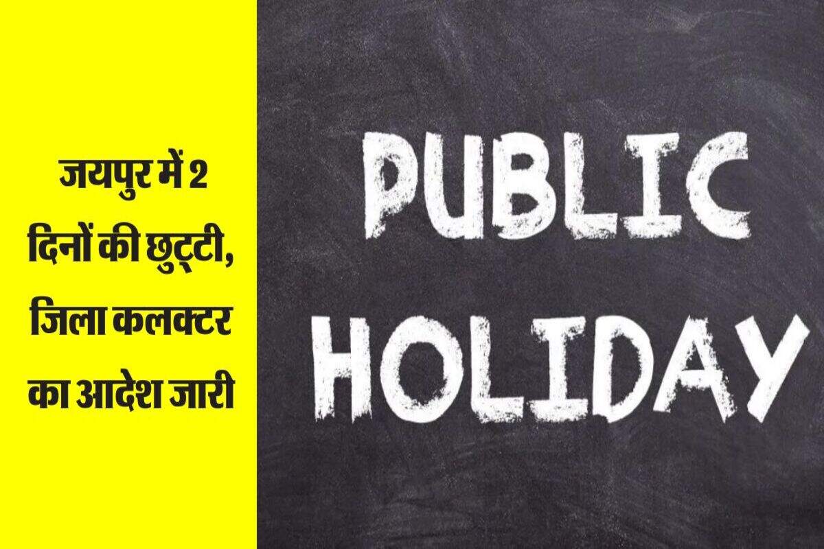 Jaipur Holiday News : राजस्थान की राजधानी जयपुर में 2 दिनों का अवकाश रहेगा। इसके लिए जिला कलक्टर डॉ. जितेंद्र कुमार सोनी ने आदेश जारी कर दिए हैं।