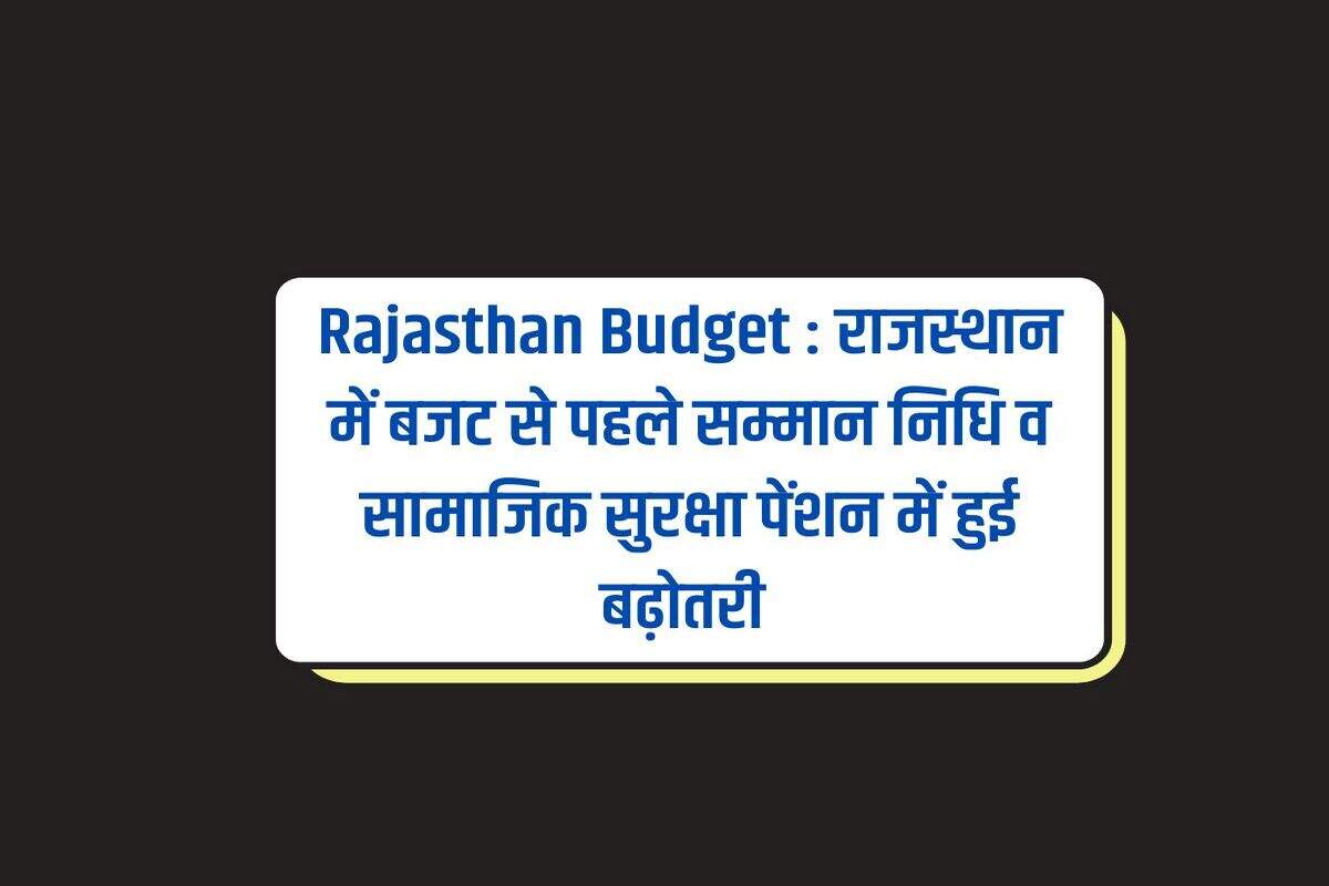 Rajasthan Budget 2024 : बजट से पहले राजस्थान में सामाजिक सुरक्षा पेंशन योजना और किसान सम्मान निधि की राशि बढ़ी। सामाजिक सुरक्षा पेंशन योजना और किसान सम्मान निधि की राशि बढ़ने के बाद से लोगों को इस अंतरिम बजट से उम्मीदें और अधिक हो गई हैं।