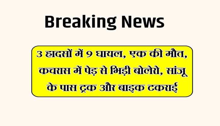 Rajsthan News : 3 हादसों में 9 घायल, एक की मौत, कचरास में पेड़ से भिड़ी बोलेरो, सांजू के पास ट्रक और बाइक टकराई