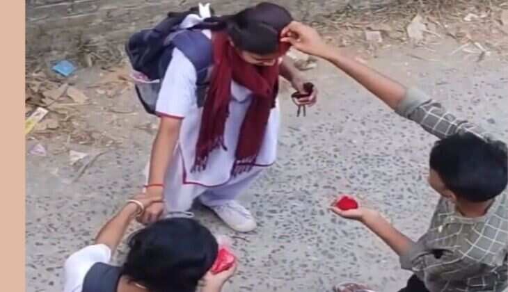 तीन स्कूली छात्रों ने एक वायरल वीडियो में लाल अबीर की जगह सिंदूर पहना देखा। लड़के ने वहीं घर के कपड़े पहन रखे थे। विद्यार्थी ने लाल सिंदूर लाया था। इसी से छात्रा की मांग पूरी हो गई। लड़की भी आराम से अपनी मांग पूरी करती नजर आई। इसके बाद, लड़के ने छात्रा के बालों में सिंदूर लगाया ताकि घरवालों को शक न हो। छात्रा के दोस्तों ने भी ऐसा ही किया।