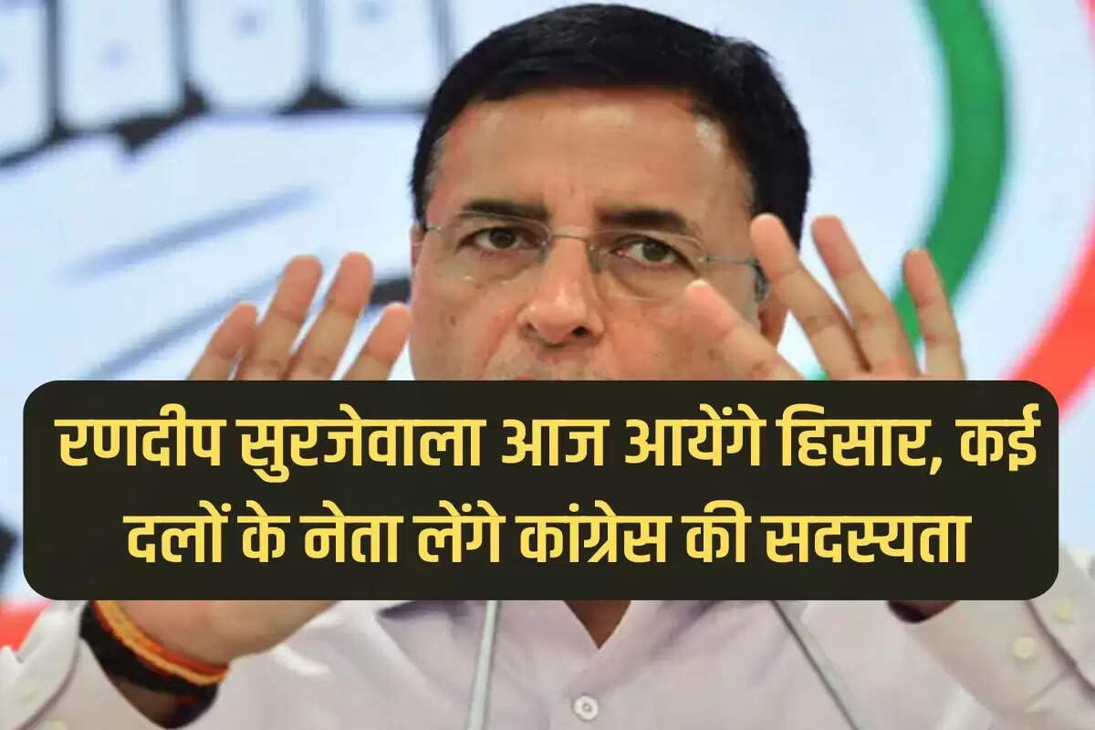 रणदीप सुरजेवाला आज आयेंगे हिसार, कई दलों के नेता लेंगे कांग्रेस की सदस्यता