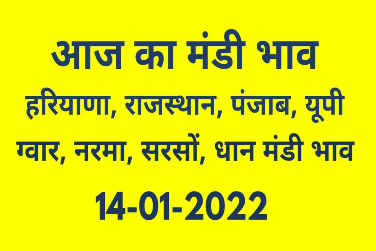 Mandi Bhav Today 2022 : इस खबर में में हमने आपको आज 14 जनवरी 2022 का राजस्थान, हरियाणा, पंजाब, म.प्र. की अनाज मंडियों के ताजा मंडी भाव (Mandi Price) की विस्तृत जानकारी प्रदान की है ,उपरोक्त मंडी भाव व्यापारियों व अन्य मिडिया स्त्रोत से एकत्रित किये गये है , कृपया किसी भी प्रकार का व्यापार करने से पहले मंडी समिति से प्राइस की पुष्टि अवश्य कर ले. उम्मीद करते है की यह जानकारी आपके लिए उपयोगी रही होगा. नोहर मंडी ग्वार भाव – आज ग्वार के ताजा भाव 14 जनवरी 2022