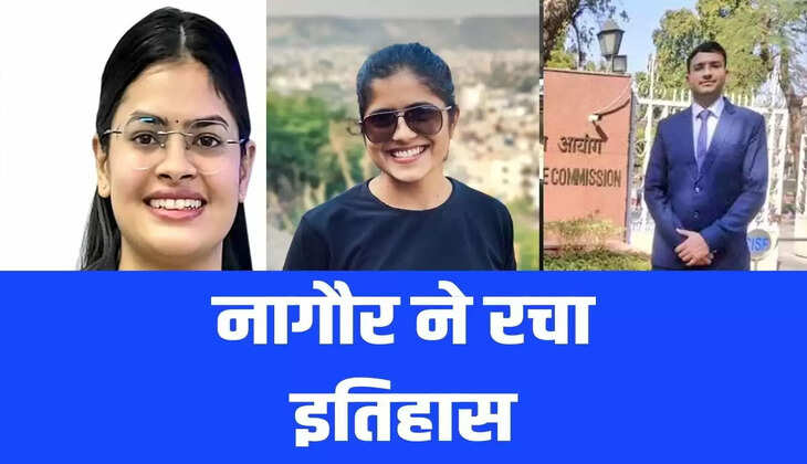 Nagaur: नागौर जिले में यूपीएससी परीक्षा में एक साथ प्रतिभाओं का चयन हुआ है. तीन प्रतिभाओं में 2 बेटियां हैं. नागौर जिले के मेड़ता की मुदिता ने 381वी रैंक हासिल की. वहीं परबतसर के दडिया की ढाणी के प्रेमसुख दडिया ने 486वीं रैंक हासिल की. वहीं मूण्डवा के खुडखुडा गांव की मैना खुड़खुड़िया ने 613वीं रैंक हासिल कर जिले का नाम रोशन किया है.