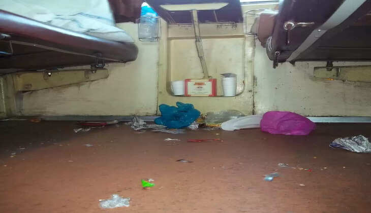 कोच से लेकर टॉयलेट तक में फैली है गंदगी