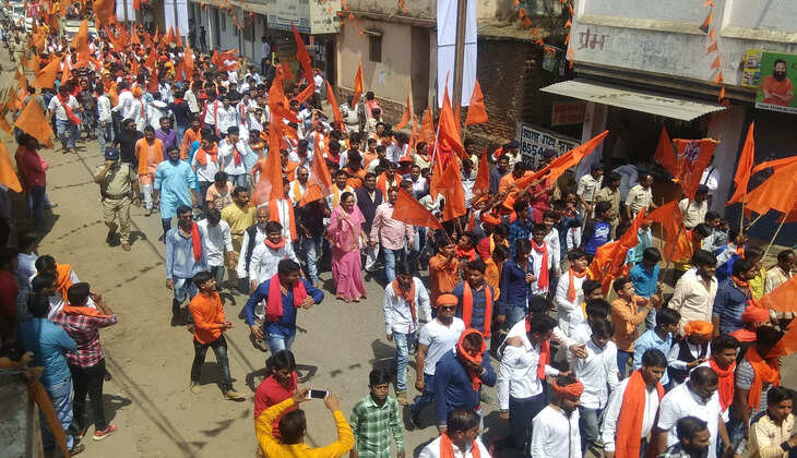 हिन्दू लड़कियों ने भगवा स्कार्फ डालकर निकाली रैली