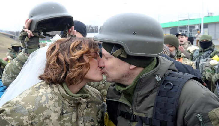 रूस vs युक्रेन| युद्ध के बीच शादी के बंधन में बंधे लड़के व लड़की